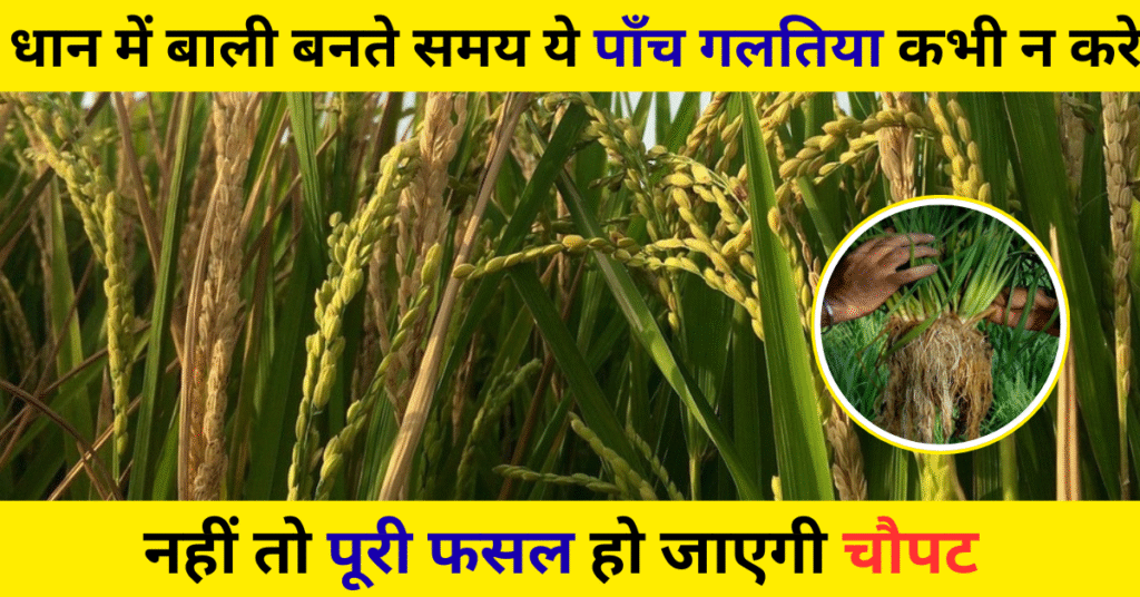 धान की फसल में गलतियों का महत्व धान में बाली बनते समय पाँच गलतियां ऐसी होती हैं जो पूरी फसल